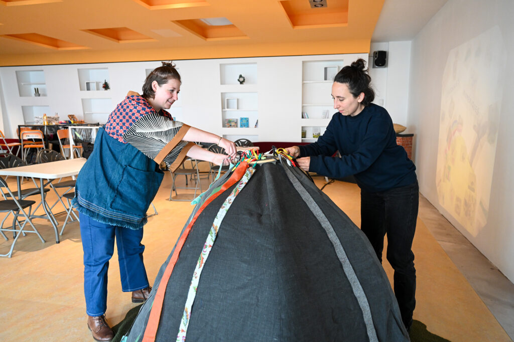 Petit à petit, la colline se pare de rubans colorés et résonne du murmure des ruisseaux et du chant des oiseaux ! A la rencontre de l’art textile, du son et de l’interaction numérique, cette œuvre participative allie nature et technologie et représente notre capacité collective à prendre soin du vivant.