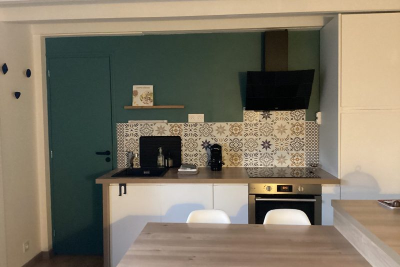 La cuisine dispose d’un vrai four, d’un lave-vaisselle, d’un frigo avec freezer, d’une bouilloire, d’un grille-pain et d’une cafetière.