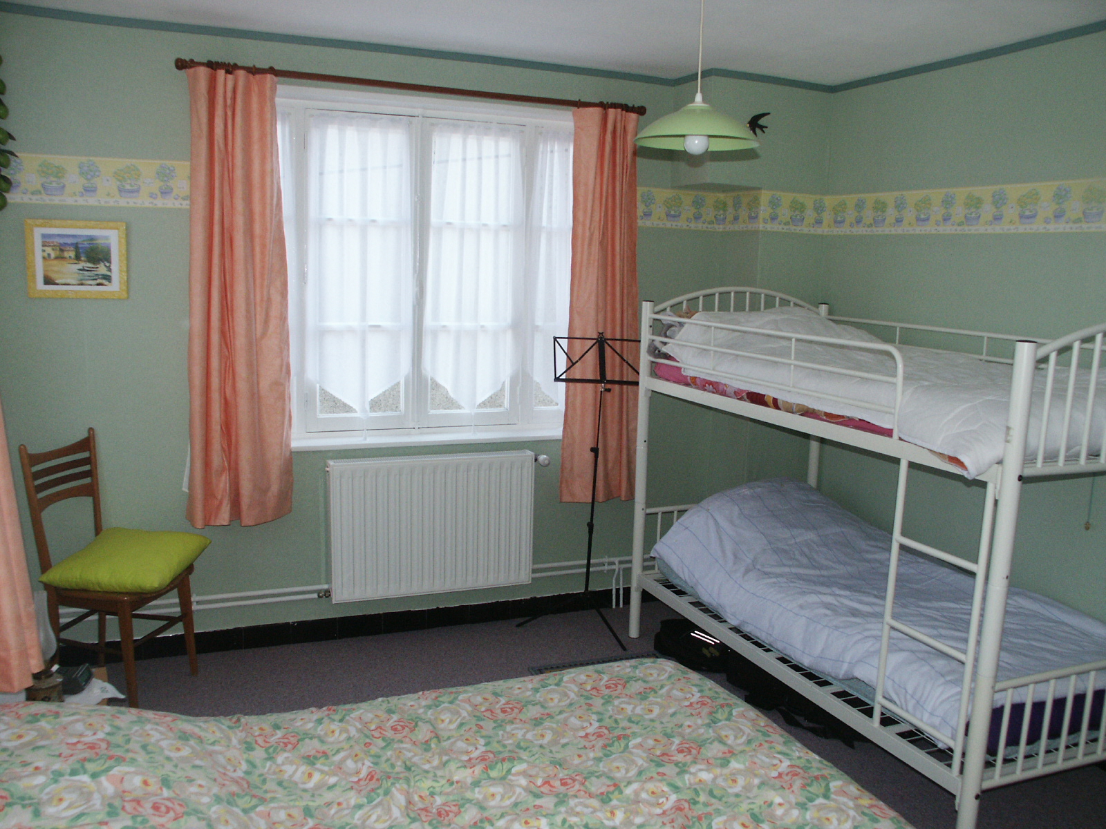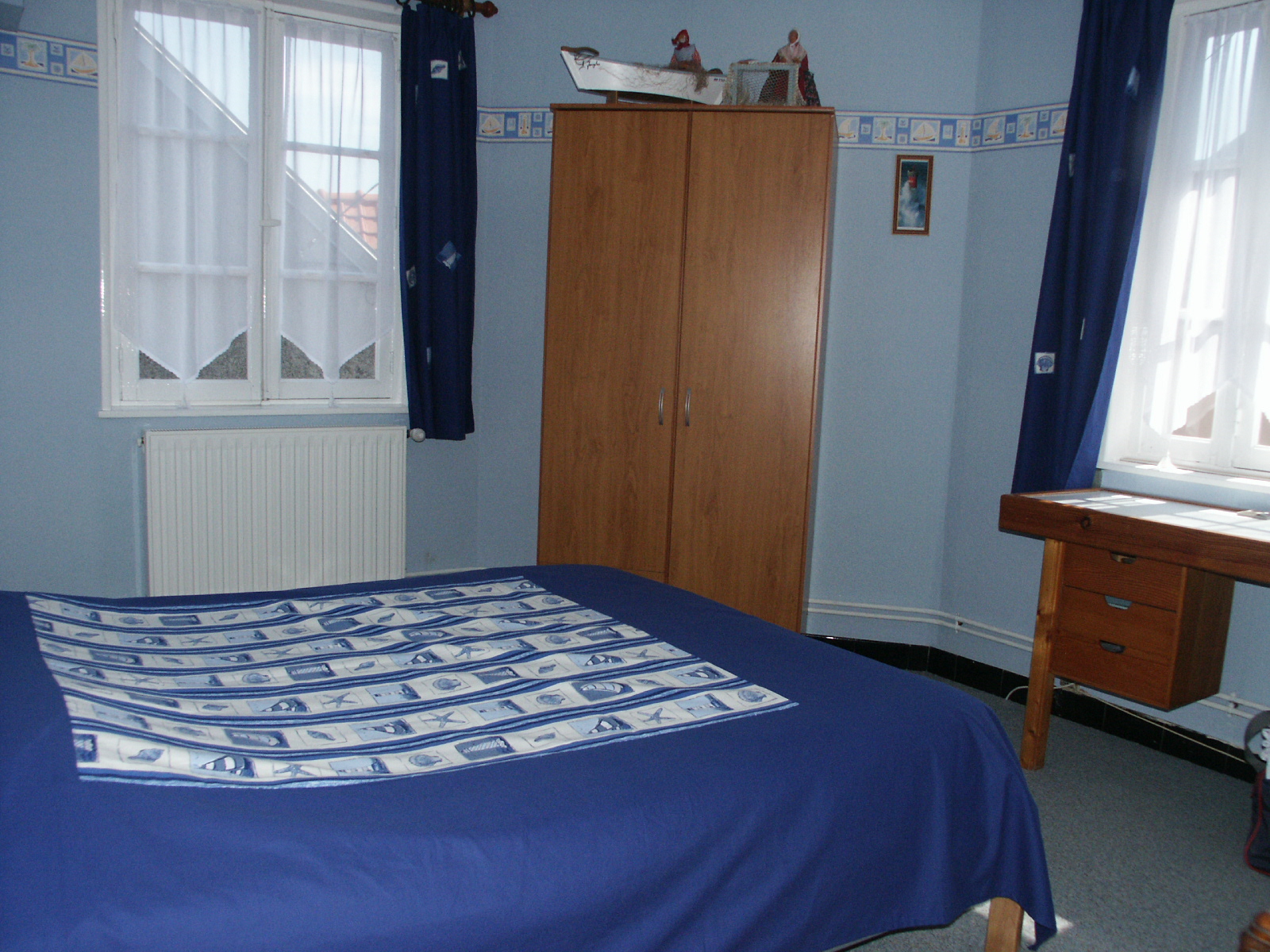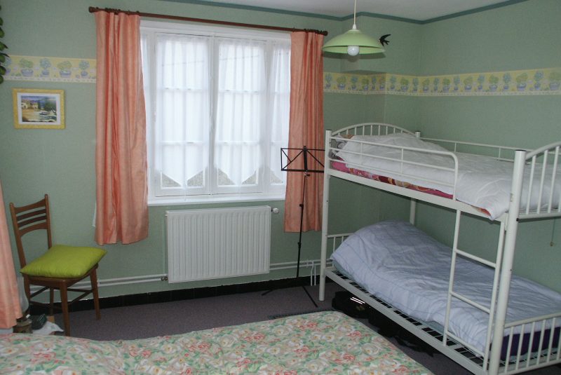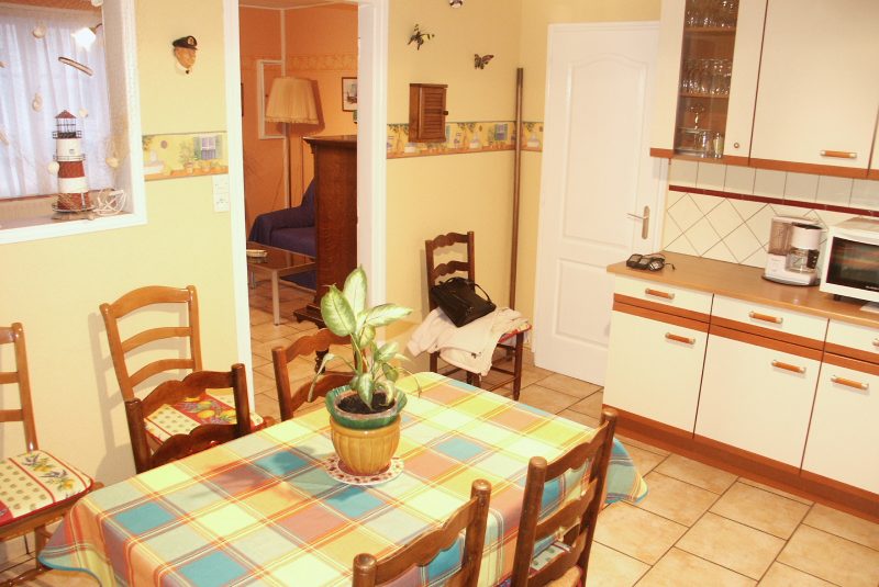 1 chambre avec 1 lit 2 personnes + 2 lits superposés) Petite cour fermée avec salon de jardin et barbecue. Jeux de société et matériel bébé. Maison tout confort. Chauffage central au gaz.